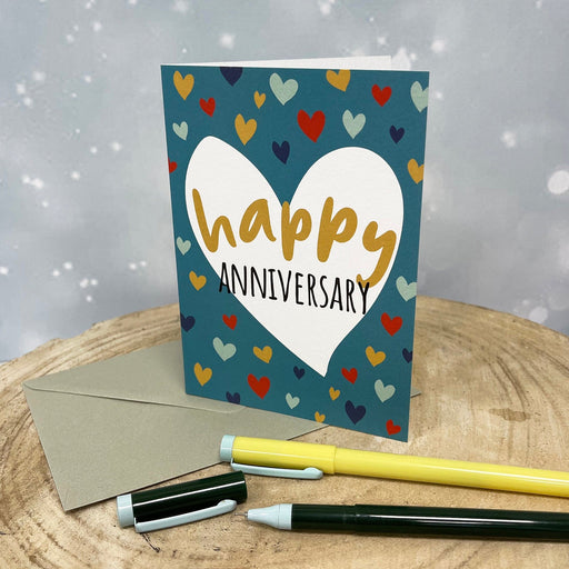 View full detailsComplete the whole gift with a Happy Anniversary greetings card for husband, wife or happy couple. Teal, red and gold its neutral feel will go perf...