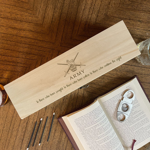 View full detailsExpert craftsmanship and customisable design come together in this personalised wooden wine carrier. With a sleek engraved British Army Crossed Swo...