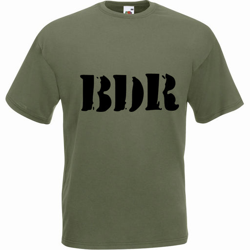 BDR olive green t-shirt. A Quality Fruit of the Loom T Shirts printed with rank abbreviation BDR for BOMBARDIER Exclusive to Empire 165gsm Fruit ...