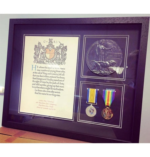 NOT IN THE UK? - PLEASE NOTE THAT WE DO NOT SHIP FRAMES OR CASES OUTSIDE OF MAINLAND UK Solid wood black medal frame for the display of up to 3 WW1...