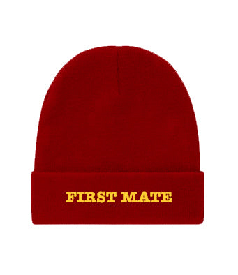 Our classic Beanie Hat with First Mate embroidered in gold.