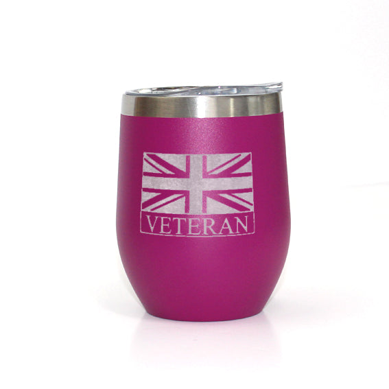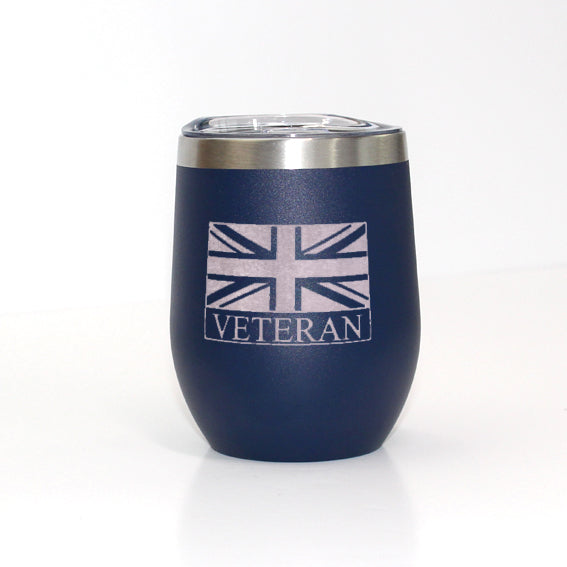 The Union Flag Veteran thermal mug is exclusively available from Empire Medals. Featuring the Empire Veteran Badge, it is capable of holding up to 350 ml and is constructed from high-grade 304 stainless steel. Its double-wall insulation helps keep beverages at their optimal temperature and allows for hygienic, easy cleaning (though not for use in dishwashers). Its construction guarantees no unpleasant tastes or odors.