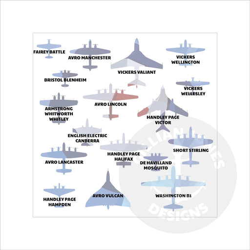 View full detailsCommemorate the legacy of RAF Bomber Command with this striking print, featuring silhouettes of every aircraft flown by Bomber Command from 1936 to...