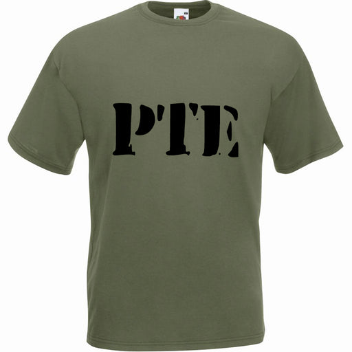 PTE olive green t-shirt. A Quality Fruit of the Loom T Shirts printed with rank abbreviation PTE for PRIVATE