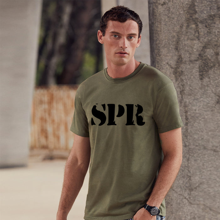 SPR olive green t-shirt. A Quality Fruit of the Loom T Shirts printed with rank abbreviation SPR for SAPPER