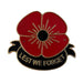 - Design: Poppy motif with “Lest We Forget” wording