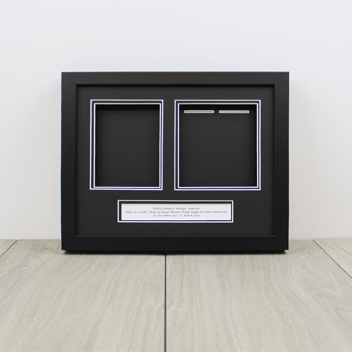 This medal frame holds a standard 3x4" photograph and 2 medals. If your chosen number of medals is not shown or you would like a different configuration please contact us.