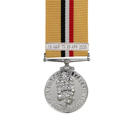 View full detailsThe Iraq Op Telic Medal with 19 March - 28th April 2003 Bar. Awarded for service in or related to operations in Iraq from 20th January 2003. A silv...