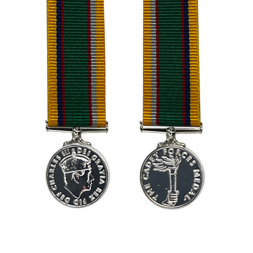 The qualifying period for the medal is 12 years, with clasps awarded for further 8 years and from 1st April 1999, 6 years service. Up to 3 additional awards are decorated with bars, 4+ awards were decorated by a gilt rosette.