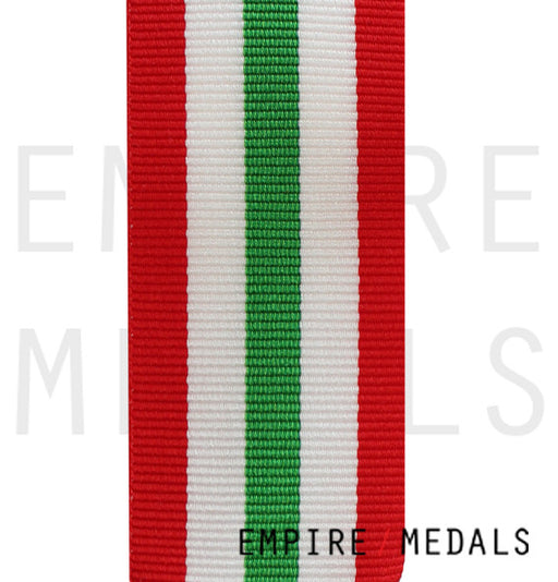 Military Medal Ribbon. Please select from miniture (for miniture medals) and full size (for full size medals). Ribbon available in 3 lengths; 6" (suitable length for standard swing mounting), 12" suitable length for court mounting) and 1m length. If you require a multiple of either size, please increase the 'Quantity' and we will supply your ribbon in a single length. For example; if you require 2m of miniture ribbon, select 'Miniature' from the first drop down', then select '1 Metre Length', then increase the quantity to '2'. We will then send you a 2 metre length of miniature ribbon.
