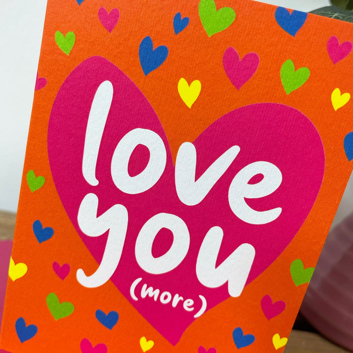 Designed in bright colours it will go perfectly with any of our gifts for your loved-one with a 'love you (more)' message.