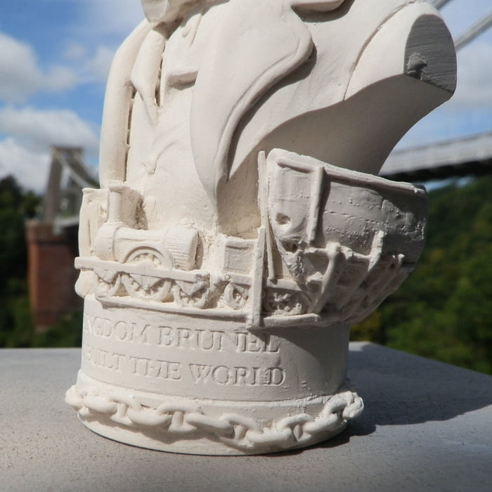 As with all Famous Faces there are objects around the base. For this bust we have included some of the great engineers master pieces including the Box Tunnel; Clifton Suspension Bridge, A Steam Locomotive and the bow of the SS Great Britain.