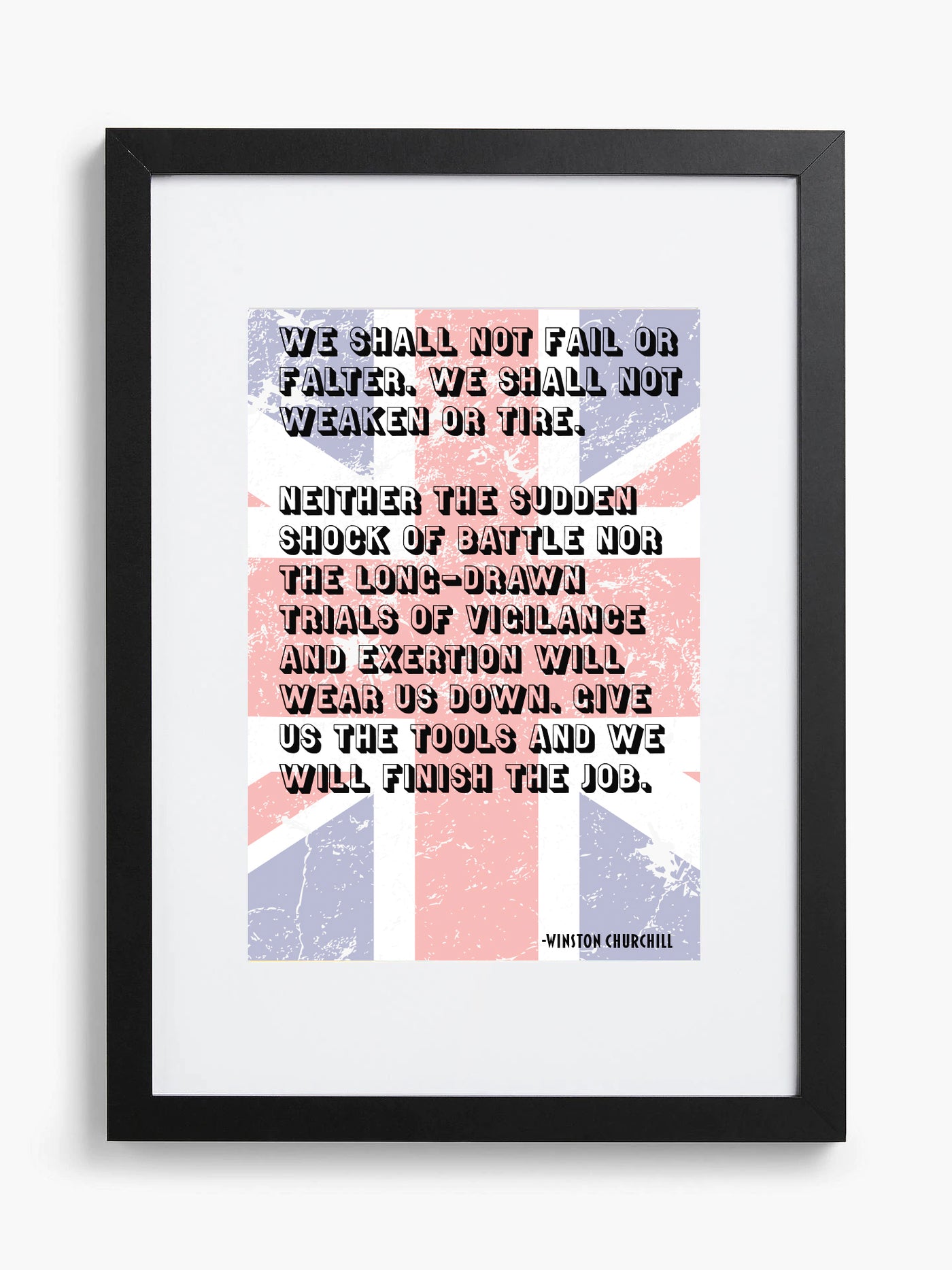 "We shall not fail or falter. We shall not weaken or tire. Neither the sudden shock of battle nor the long-drawn trials of vigilance and exertion will wear us down. Give us the tools and we will finish the job."