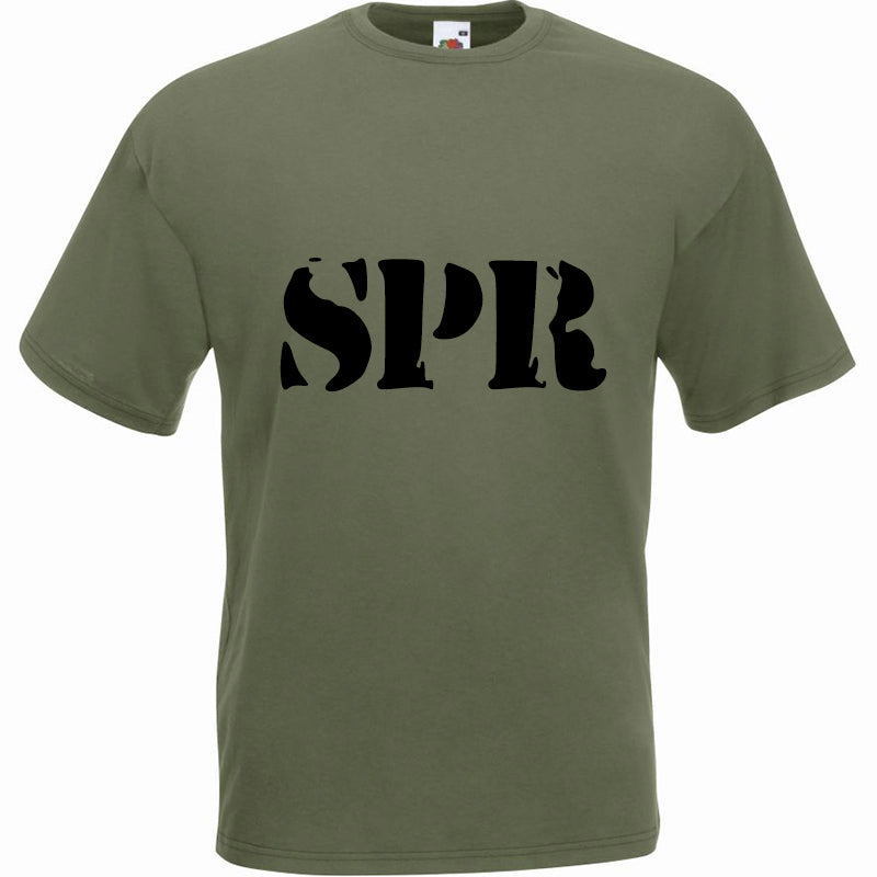 SPR olive green t-shirt. A Quality Fruit of the Loom T Shirts printed with rank abbreviation SPR for SAPPER